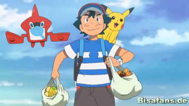 Ash verabschiedet sich von den Pokémon und meint, dass er sie morgen wieder mit Essen besuchen werde.