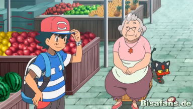 Ash öffnet ihm die Tür und verfolgt es bis zur Villa, wo es Bissbark die Tsitrubeere gibt. Ash bemerkt,