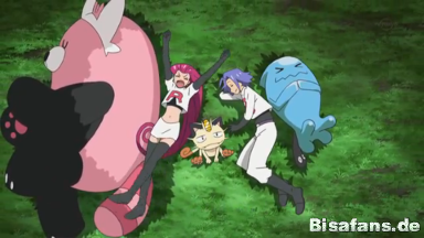 Ihre Pokémon Molunk, Zubat und Deponitox setzen Giftschock ein und zerstören beinahe einen Milchbehälter. Ash stellt sich ihnen mit