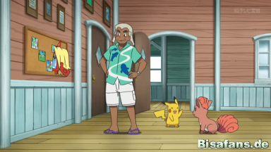 Sie gehen deshalb zu Alola-TV, damit sie sich die Aufnahmen ansehen können. Pikachu aber verpasst seinen