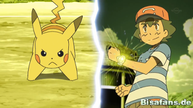 Nach einiger Zeit sind Ash und Pikachu bereit ihren Z-Kristall einzusetzen und Pikachus Z-Attacke Gigavolt