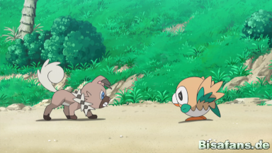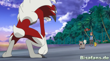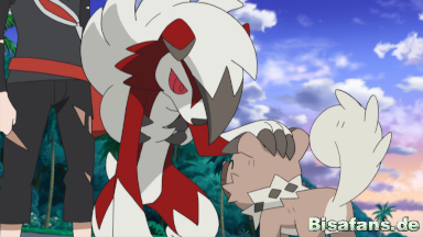 Mit Hilfe eines Z-Kristalls setzen Gladio und Wolwerock die Z-Attacke Apokalyptische Steinpresse ein und schlagen Team Rocket so in die Flucht. Kurz bevor Ash und Gladio ihren Kampf beenden können, unterbricht Lilly sie erneut und erinnert Ash daran, dass die Schule gleich beginnt. Die beiden nehmen sich vor, bald wieder gegeneinander zu kämpfen.