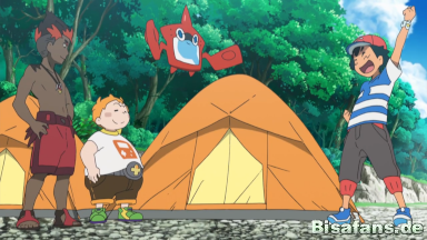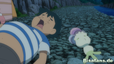 der dadurch unterbrochen wird, dass sie durch Ashs Pokémon geweckt werden. Hungrig kehren die beiden zu dem