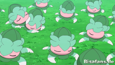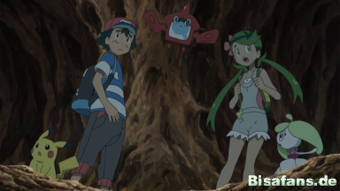 Voller Motivation machen sich alle auf zu den Stellen, an denen es die Zutaten wahrscheinlich gibt. Ash und Maho versuchen auf die Spitze eines Berges zu gelangen, um dort Magobeeren von einem Baum zu pflücken. Doch ihnen versperren einige Imantis den Weg, weshalb sie sich um die Pokémon herumschleichen müssen. An der Spitze angekommen wecken sie die Imantis aus Versehen auf, weshalb Ash sich schnell eine Magobeere schnappt und mit Maho davon rennt. Kurz danach finden Maho und Ash ohne Zwischenfälle Vitalkräuter in einer Felsspalte, die sie mit Pikachus Hilfe erreichen können.