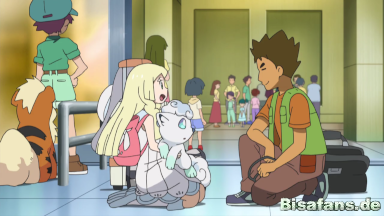 Am Flughafen der Kanto-Region angekommen treffen die Freunde auf Rocko, der sich um Lillys Alola-Vulpix kümmert, da dieses sich nicht gut fühlt.