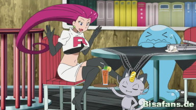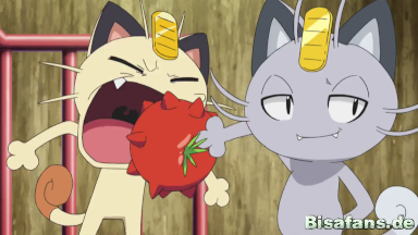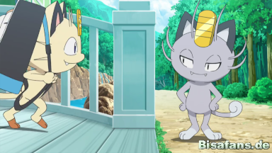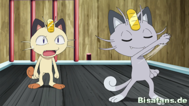Mauzi gefällt es gar nicht, dass das Alola-Mauzi sich durch vorgespielte Nettigkeit die Gunst von Jessie und James erlangen möchte, doch die beiden bemerken dies nicht und freuen sich über den unerwarteten Neuzugang. Mauzi sagt dem Alola-Mauzi schließlich, dass sie sich am Tor der Trainerschule zu einem Gespräch treffen sollten.