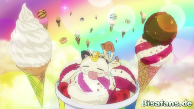 Team Rockets Mauzi sucht in ihrem Versteck im Wald nach einem Eisbecher, den es sich extra aufgehoben hat und gerne essen möchte. Nachdem es bemerkt, dass Jessie seinen Eisbecher ohne zu fragen gegessen hat, rennt es beleidigt davon und fällt in ein Schlammloch. Ein wildes Alola-Mauzi beobachtet diesen Unfall und wird von Jessie und James entdeckt. Da die beiden Team Rocket-Mitglieder denken, dass das Alola-Mauzi ihr Mauzi sei, welches ein graues Fell habe, da es in eine Schlammgrube gefallen sei, nehmen sie es mit in ihr Versteck, nur, um kurze Zeit später zu bemerken, dass es ein wildes Alola-Mauzi ist, nachdem das wahre Mauzi zurück in das Versteck gekehrt ist.