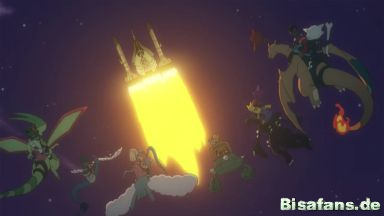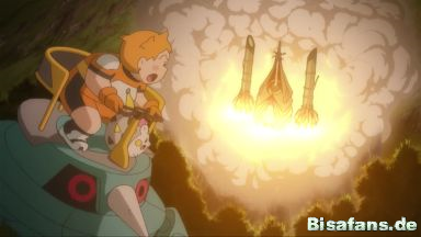 Kaguron hebt in der Folge in Richtung Mond ab. Die Umgebung bleibt dank des Schutzwalls unversehrt. Chrys und die anderen fliegen der Ultrabestie kurz hinterher und winken ihr zum Abschied zu.