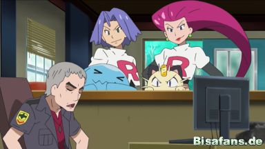 Ash registriert, dass er gegen Team Rocket im Rahmen seiner Vorprüfung kämpfen muss. Jessie weiß natürlich nichts davon,