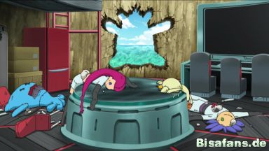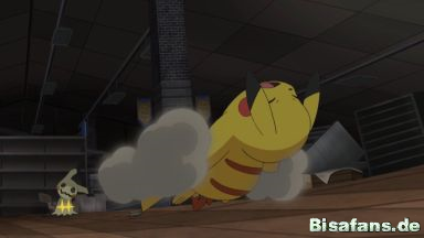 kann Mimigma erneut mit seinem Schweif abwehren. Pikachu zeigt sich zunehmend erschöpft und Team Rocket wittert nun die