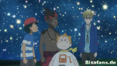 Gemeinsam suchen sie am Himmel nach den Sternbildern ihrer Pokémon. Tracy erkennt das Sternenbild von Rayquaza.