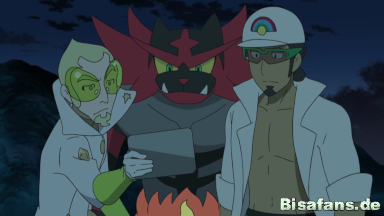 Auf Alola erkennen die Bewohner inzwischen, dass eine Sonnenfinsternis entsteht, da Solgaleo nichtfür das Licht auf den Inseln sorgen kann, während es von Necrozma übernommen wurde. Nach einem harten Kampf schaffen es Professor Kukui und Fabian, die Pokémon von Team Rocket zu besiegen. Mit Hilfe von Kapu-Riki, welches das Schiff von Team Rocket beschädigt, kann es davon abgehalten werden, die Ultrapforte zu betreten.