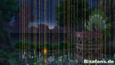Unter Tränen verabschiedet es sich von Ash und Pikachu und erinnert sich an die schöne Zeit und die Abenteuer, die sie zusammen verbracht haben. Sie kehren zurück nach Mele-Mele, um dort ihr alltägliches Leben erneut aufzunehmen.