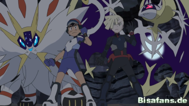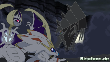 Lunala schenkt Gladio das Lunalium Z, ein Z-Kristall nur für Lunala. Ash und Gladio setzen daraufhin die Z-Attacken für Lunala und Solgaleo gemeinsam ein und treffen Necrozma damit schwer, was bewirkt, dass es, die auf das Pokémon treffende Energie vertilgend, zu einem Ultra-Necrozma wird.