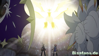 Nachdem Ash, Gladio, Kiawe und Tracy ihre gebündelte Z-Attacke auf Necrozma gerichtet haben, erhoffen sie sich, dass es von Solgaleo ablässt. Doch trotz des starken Treffers scheint der Plan nicht zu klappen und Necrozma nicht von Solgaleo abzulassen.