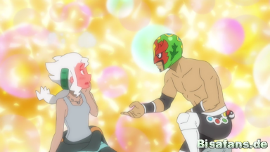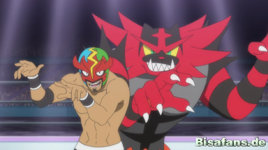 Nachdem Marlon auf der Toilette festgebunden worden und Kukui bei Burnette angekommen ist, entschließen sich Fabian und James dazu, für Mask Royale einzuspringen, indem Fabian sich als Mask Royale verkleidet und an dessen Stelle mit Kukuis Fuegro gegen seinen Rivalen in den Ring steigt.