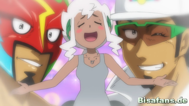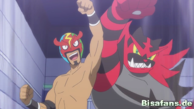 Nachdem Fabian bereits nach einem Schlag besiegt wurde, schafft es Kukui mit der Hilfe von Marlon, der sich inzwischen selbst befreien konnte, die Maske aufzusetzen und in sein Outfit zu schlüpfen, um seinen Rivalen besiegen zu können und ihn in die Flucht zu schlagen. Seine Fans feiern den Sieg von Mask Royale und das Meet and Greet kann in Ruhe beendet werden. Keiner hat bemerkt, dass Professor Kukui Mask Royale ist. Gemeinsam gehen Ash, Burnette und Kukui nach Hause, um den ereignisreichen Tag zu Ende gehen zu lassen.