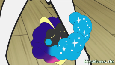 Als Cosmog und Ash wieder aufwachen, teleportiert es ihn zusammen mit Pikachu in die Nähe von Team Rocket, die ihre Chance nutzen wollen, um Cosmog zu stehlen. Ash und Jessie kämpfen mit Pikachu und Mimigma gegeneinander und schaffen es in einem Moment der Unaufmerksamkeit, das Cosmog zu schnappen. Cosmog teleportiert sie ebenfalls an einen anderen Ort der Region. Sie landen direkt vor den Füßen von Kosturso, welches Team Rocket unter die Arme und mit in seine Höhle nimmt.