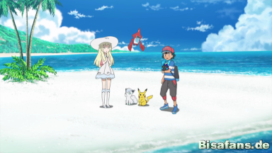 Cosmog teleportiert daraufhin Lilly, Ash und deren Pokémon an verschiedene Orte aus Lillys Erinnerung: Zunächst an den Strand,