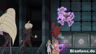 Sie stoßen zu dem Kampf von Ash und Fabian hinzu, woraufhin Gladio Typ:Null einsetzt, das Lilly erneut Angst einjagt. Auch Typ:Null bemerkt,