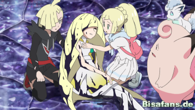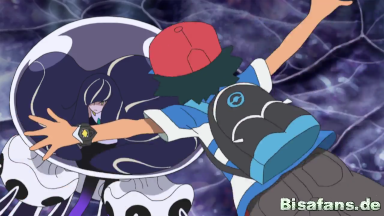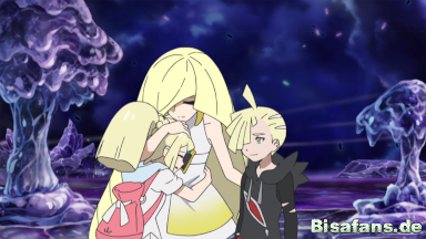 Nachdem Ashs Freunde sich alle zu Kämpfen bereiterklärt haben, schaffen sie es alle, mit Teamwork die Pokémon zu besiegen, die sich ihnen in den Weg gestellt haben. Durch die Kräfte der Ultrabestien jedoch werden die besiegten Pokémon immer wieder geheilt. Um sie zu besiegen, muss Ash also gegen Anego gewinnen. Auch Gladio erkennt das und macht sich deshalb auf den Weg zu Ash, um ihm zusammen mit Lilly, die Ash ebenfalls gefolgt ist, zu helfen.