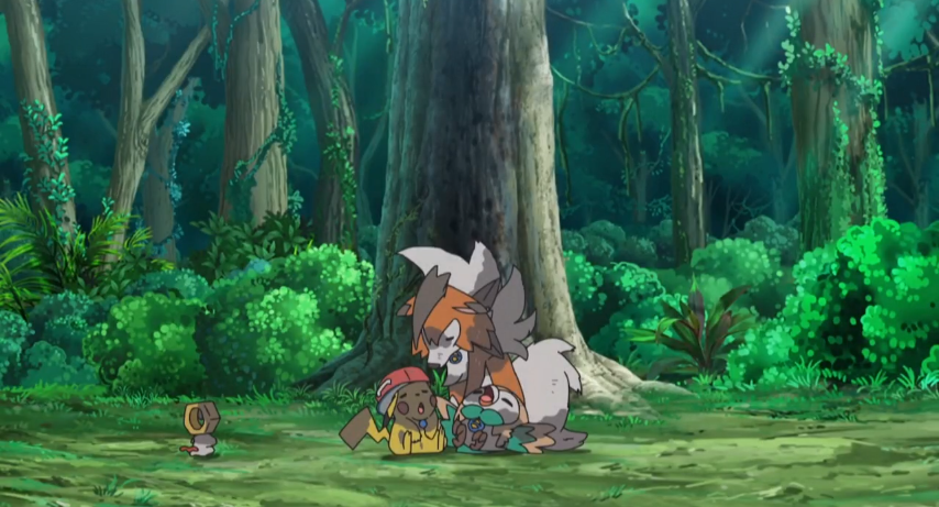 Gemeinsam durchqueren sie den Wald, um ihren Trainer zu finden. Plötzlich bemerken sie in der Ferne eine Trainer-Mütze aus dem Gras herausragen, die Ash gehören könnte. Hoffend, ihn gefunden zu haben, eilen die Pokémon zu der Stelle. Jedoch entpuppt sich der Träger von Ashs Mütze, die dieser vor seiner Zeitreise zurückgelassen hat, zu ihrer Enttäuschung als ein Mogelbaum. Der Fund der Mütze lässt sie aber vermuten, dass dieser sich ganz in der Nähe befinden müsse und sogleich setzen sie die Suche nach ihm fort.