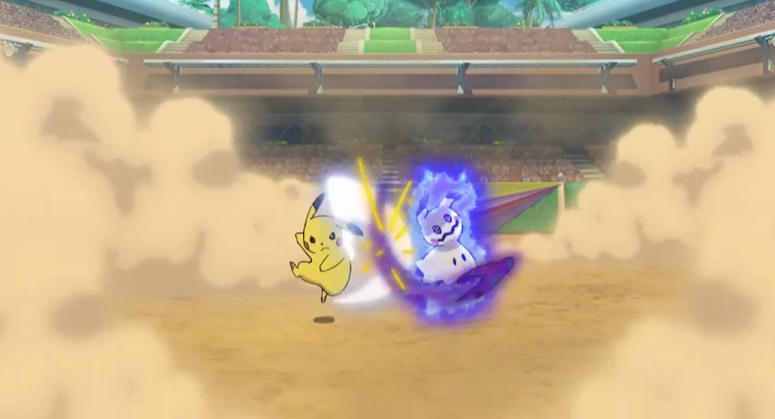 ist weiterhin dabei. Dessen Pikachu trifft kurz auf Jessies Mimigma. Ehe es aber einen Sieger in diesem Kampf