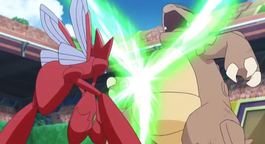 schafft es, dessen Ring zum Schock des Psycho-Pokémon teilweise zu schmelzen. Mit einer anschließenden