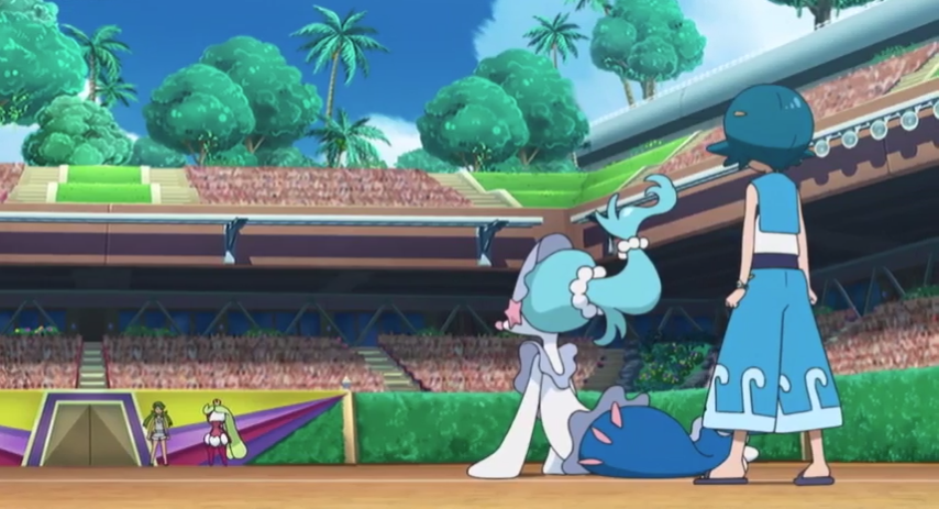 ihrer Freundin zum Sieg und will ihr vermeintlich besiegtes Pokémon zurückrufen. Fruyal aber weigert sich, sich