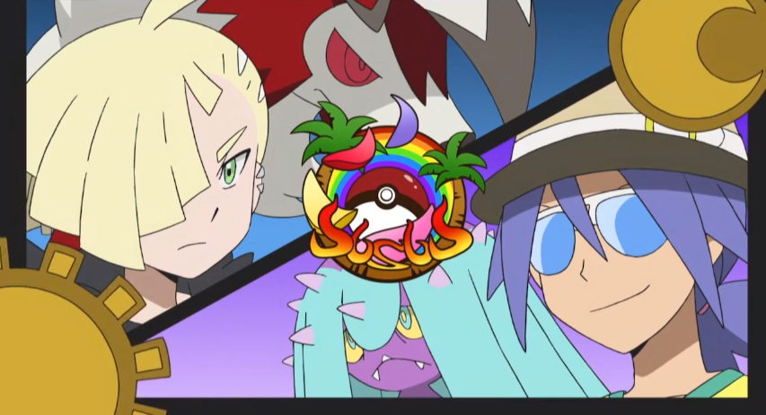 Ash, Chrys, Fabian, Gladio, Hala, Hapu'u, James, Jessie, Kiawe, Lilly, Maho, Mayla, Pia, Professor Burnett, Professor Kukui, Tali, Tracy, Turniersprecher, Yasu, Zuschauer