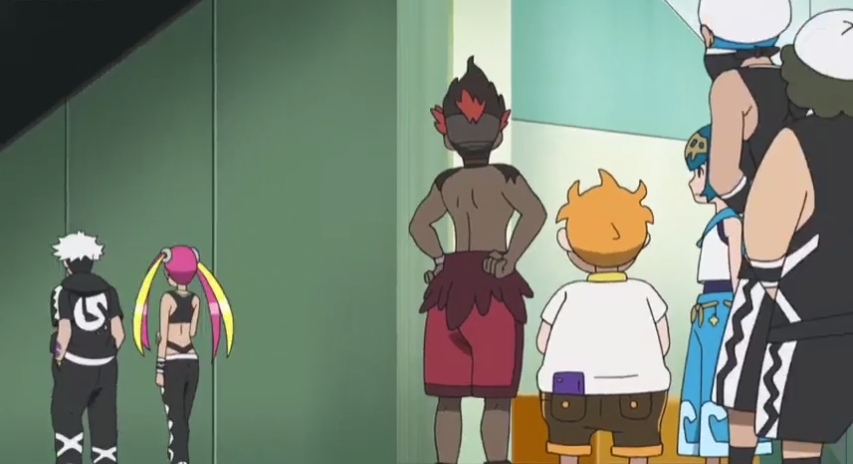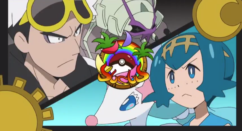 Ash, Bromley, Chrys, Chrys's Eltern, Fran, Gladio, Hala, James, Jessie, Kiawe, Lilly, Maho, Mayla, Professor Kukui, Schwester Joy, Tali, Team Skull Rüpel (Rapp, Tupp, Zipp), Tracy, Turniersprecher, Zuschauer