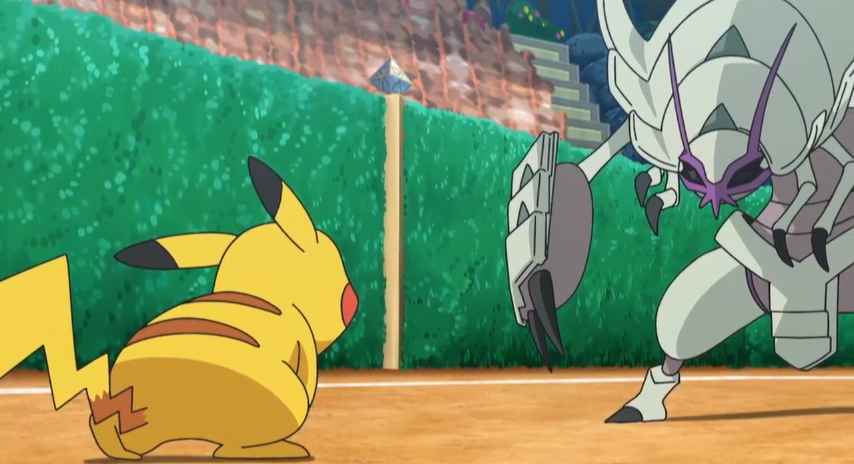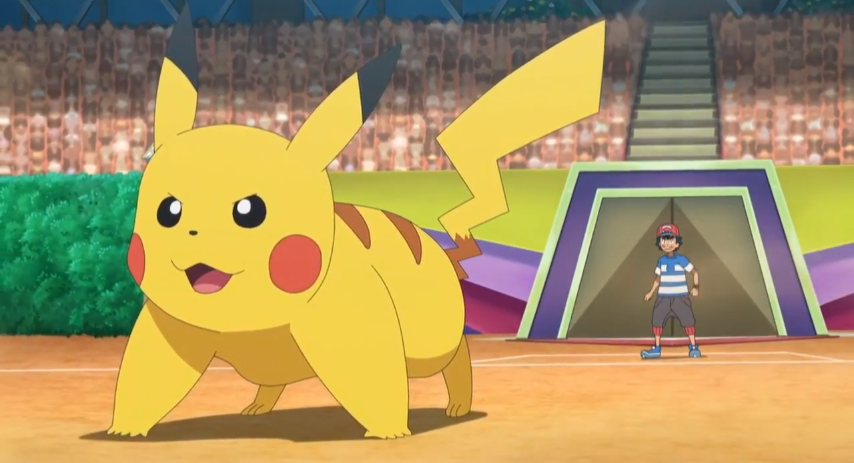 Als zweites und letztes Pokémon schickt Ash nun Pikachu in den Kampf gegen Tectass. Bromley erinnert Ash an ihren letzten Kampf, als