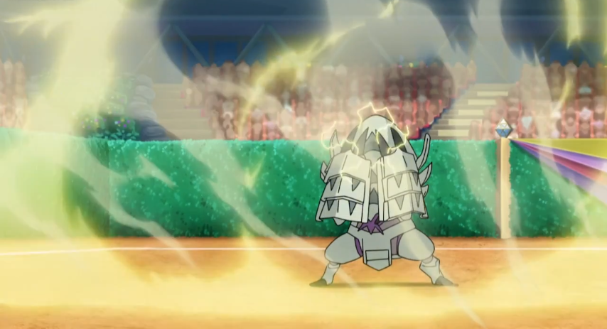 kann Bromleys Pokémon trotz seiner Effektivität problemlos mit dessen Schild abwehren. Doch Ash hatte schon damit gerechnet und Pikachu