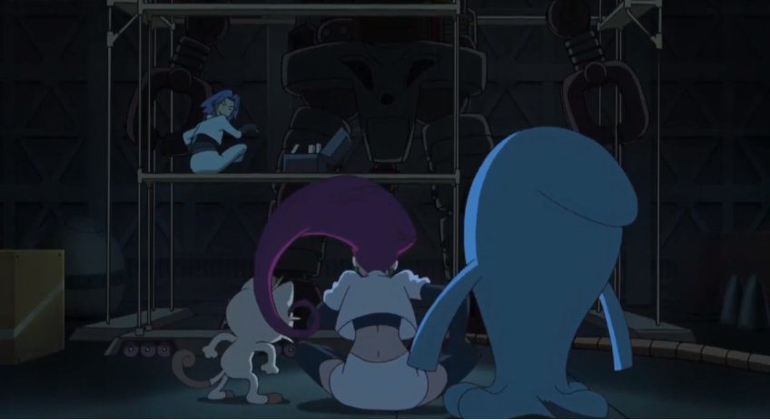 Zur gleichen Zeit verfolgt Team Rocket das Finale in einem Versteck vor dem Fernseher, während James noch kräftig dabei ist, letzte Änderungen an ihrer Robo-Maschine vorzunehmen, mit Hilfe derer sie sich die Pokémon der Liga-Teilnehmer schnappen wollen.