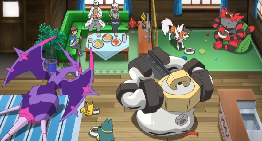 Am folgenden Tag treffen sich alle bei Maho im Restaurant. Dort testen ihre Pokémon von