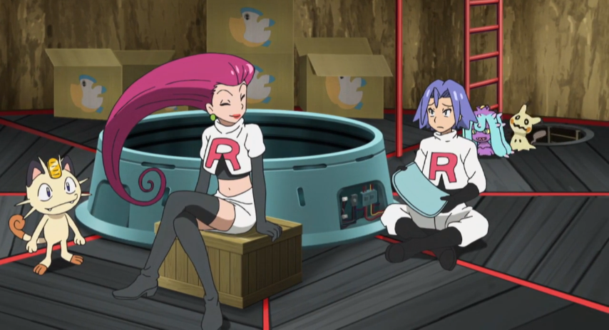 Team Rocket ist bereits am Packen, wobei sie überlegen, wie sie ihren Pokémon am