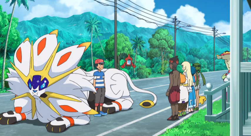 ihnen auftaucht. Ash, der Solgaleo von seinem Abenteuer in der Ultradimension kennt,