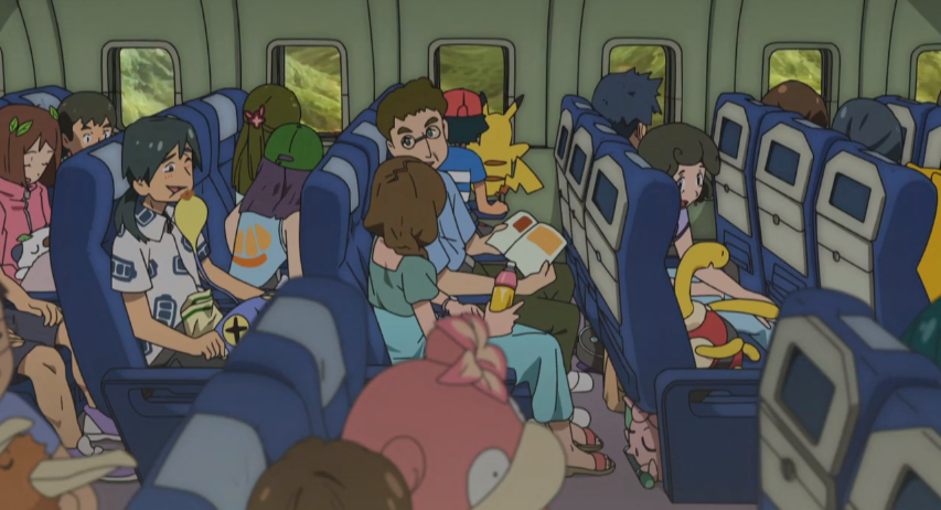 Als Ash wehmütig aus dem Fenster im Flugzeug auf Alola schaut, bemerkt er seine