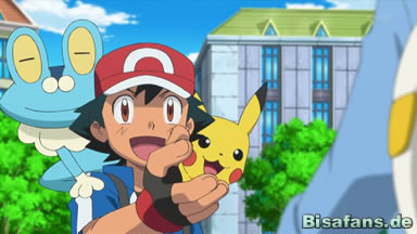 Da Ash nun ohnehin im Pokémon Center ist, ruft er nun auch noch Professor Eich an, um ihm Bescheid zu sagen, dass er gut angekommen ist und bereits sein erstes neues Pokémon der Region hat. Professor Eich ist begeistert, wird aber bald darauf von seinem Rotom geschockt. Daraufhin will sich Ash schließlich auf dem Weg zur ersten Arena machen. Citro, der zusammen mit Heureka vor dem Pokémon Center gewartet und eine Karte studiert hat, während Ash mit Professor Eich telefoniert hat, meint, dass sie über Route 4 am besten dorthin kommen, woraufhin sich Ash bedankt. Als er jedoch hört, dass Citro ganz so redet, als würde er selbst mitkommen wollen, ist er überrascht, doch Citro erklärt ihm, dass er an sich selbst arbeiten und so ebenfalls mit auf ein Abenteuer mitkommen will und Heureka ihn natürlich begleiten wird – sofern Ash nichts gegen Begleiter einzuwenden hat. Das hat Ash nicht und die beiden schütteln die Hände, was Heureka dazu bringt sich zu beschweren, da sie die Hände der größeren Jungen nicht erreichen kann. So gehen beide in die Knie, damit Heureka auch einschlagen kann und auch Froxy und Pikachu schlagen mit ein.