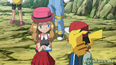 Als sie später vom Pokémoncenter aufbrechen wollen, gibt Serena Ash ein kleines Säckchen mit den Keksen, die sie gebacken hat, worüber Ash sich freut und auch Pikachu einen Keks abgibt. Da beschwert sich Heureka, dass sie auch Kekse haben will, woraufhin Serena auch ihr und ihrem Bruder Tütchen mit Keksen gibt.