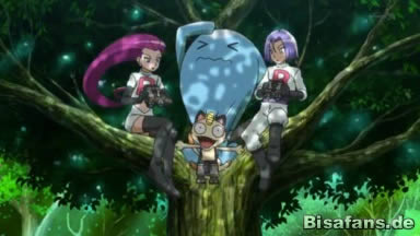 Zu dritt können sie das Glas zerbrechen und als Team Rocket in ihrem Versteck hält und nach den Pokémon sehen will, erlebt es eine unschöne Überraschung.