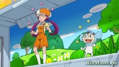 Doch alle Fragen sind schnell vergessen, als James die Kinder auf die Bühne einlädt, damit sie es selbst versuchen können. Alle, auch Ash und die Pokémon, bekommen einen Ball, den sie auf Befehl hin in die Luft werfen sollen.