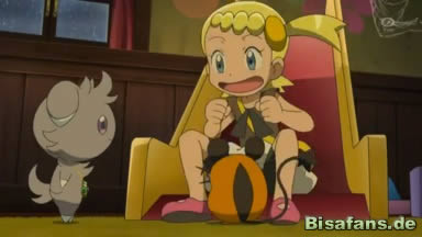 Heureka ist schließlich mit dem Pokémon, bei dem es sich um ein Psiau handelt, in einem Zimmer. Psiau lässt einen Ball schweben und wirft ihm so dem Mädchen zu, das ihm den Ball zurückwerfen soll. So beginnen die beiden, zu spielen, bis auch Dedenne mitspielen will. Dieses ist aber zu klein, um den Ball zu fangen, weshalb es und Heureka beide zu Boden fallen. Psiau fängt die beiden aber mit Konfusion auf.