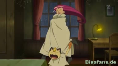 Auch Team Rocket wird vom Unwetter überrascht und sucht in der gleichen Villa Schutz, da es ihnen möglich ist, durch ein Fenster, das sich öffnet, einzusteigen. Dabei überlegt Jessie, die Villa zu ihrer Basis zu machen, da sie so unheimlich ist, dass sich ihr niemand freiwillig nähern wird.