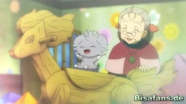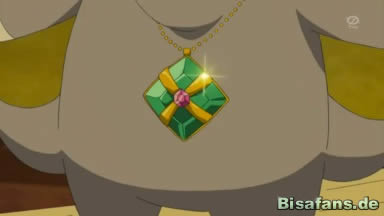 Als Elisa und Psiau im Auto sind, fällt Elisa auf, dass Psiau eine schöne Blume für ihre Großmutter mitgenommen hat und beschließt dann, Psiau die Kette zu schenken, da auch ihre Großmutter das vermutlich gewollt hätte, worüber sich das Pokémon sehr freut.