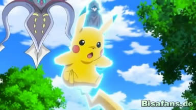 Ash und Mauzi können fliehen, indem sie Calamanero mit einem herabfallendenen Planetenmodell ablenken. Sie landen aber schließlich in dem Raum, in dem sich Madame X und Team Rocket aufhalten und Madame X lässt Pikachu Ash angreifen. Doch obwohl er von einer Attacke nach der anderen getroffen wird, ist Ash überzeugt, dass Pikachu auf ihn hören wird.