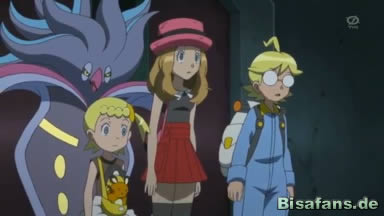 Ash, Serena und Mauzi kommen daraufhin in einen Hinterhalt, indem sie von ihren Freunden überrascht werden. Als Calamanero sie hypnotisieren will, zerkratzt Mauzi sich selbst und Ash das Gesicht, Serena zögert aber und wird hypnotisiert.