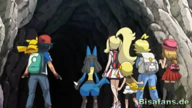 Schließlich erreichen sie die Höhle und zögern zuerst ob der Dunkelheit. Citro hat zum Glück einen Scheinwerfer dabei, doch als sie hineingehen wollen, hören die Freunde seltsame Geräusche. Bald fliegt Team Rocket an ihnen vorbei und da sich Connie Sorgen um den Lucarionit macht, will sie sofort hinein. Dennoch ist allen unheimlich, als sie zur Tür in der Höhle kommen.