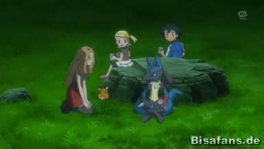 Beim Essen gibt es für die Pokémon wieder Pofflés für die Pokémon und auch Lucario ist begeistert von diesen.