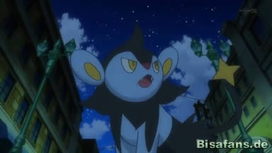 Der Ballon von Team Rocket fliegt weg. Ash lässt Dartignis aus dem Ball, welches den Ballon mit Klingensturm zum Abstürzen bringt. Am abgestürzten Ballon angekommen, greift Pam-Pam Team Rocket an. Team Rocket holt seine Pokémon ebenfalls heraus und beide greifen Pam-Pam an. Während Pam-Pam für Fynx kämpft, schickt Ash Pikachu los, Fynx zu befreien. Auch Igamaro greift mit an. Währenddessen probieren Pikachu und Dedenne, Fynx zu befreien und auch Pam-Pam kommt zur Hilfe, als plötzlich Jessie und ihr Irrbis vor ihnen stehen. Irrbis greift die Pokémon mit Spukball an, jedoch reißt Serena Irrbis zu Boden. Irrbis soll Serena angreifen, jedoch befreien die Pokémon Fynx und Pam-Pam greift Irrbis mit Finsteraura an. Igamaro greift Team Rocket noch einmal an und Pikachu beendet es mit Donnerblitz.